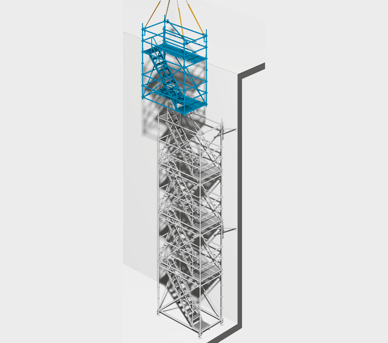 ilaveten, Allround modüler merdiven kulesi, inşaat ilerledikçe bağlantı yerleri sabitlenerek tamamen