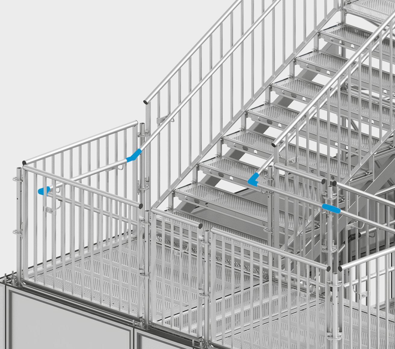 korkuluk, yönetmeliklere uygun olarak her tür merdiven için hızlı ve kolay bir şekilde monte edilebilir.