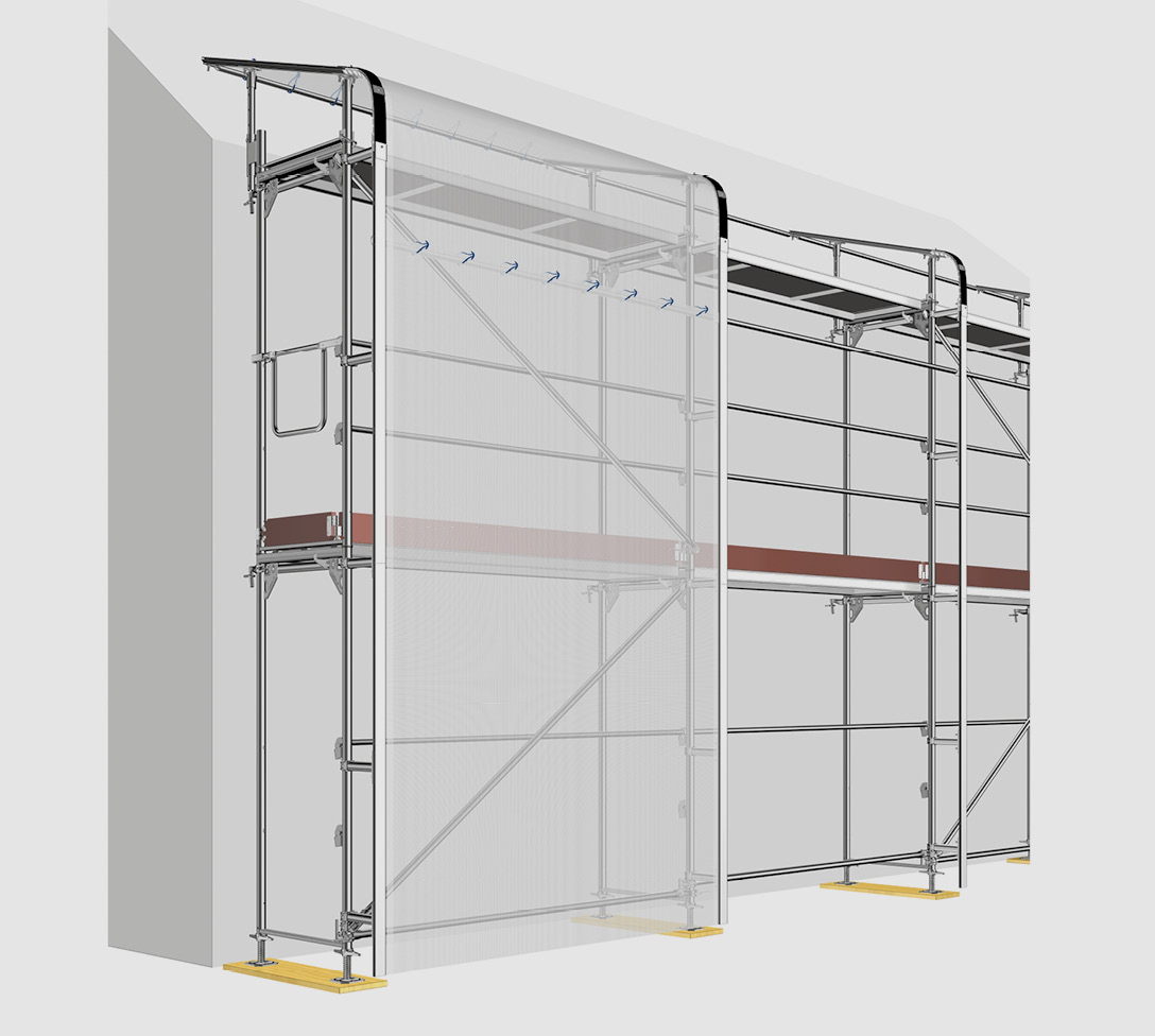 - İskele katlarından nesnelerin düşmesini önleyerek yayaları ve trafiği korur.