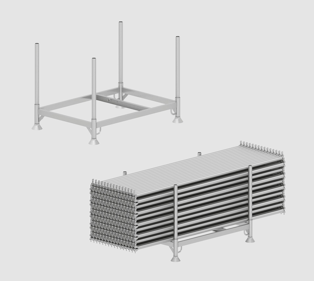 - Çıkarılabilir takma borular sayesinde boş paletlerin yerden tasarruf sağlayacak şekilde depolanması ve taşınması
